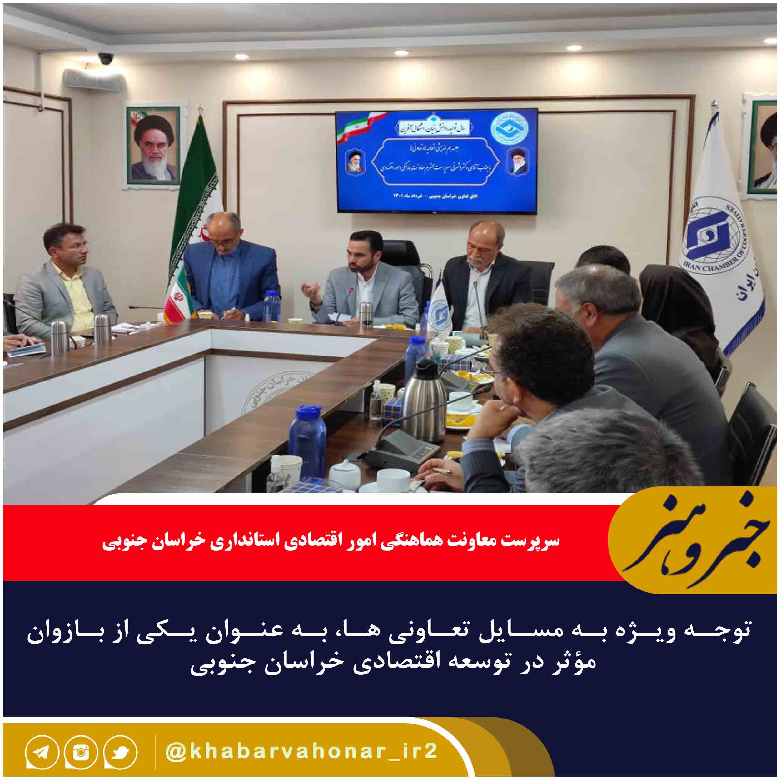 ?سرپرست معاونت هماهنگی امور اقتصادی استانداری خراسان جنوبی تأکید کرد: به مسایل تعاونی ها، به عنوان یکی از بازوان مؤثر در توسعه اقتصادی استان به صورت ویژه و تخصصی پرداخته شود.