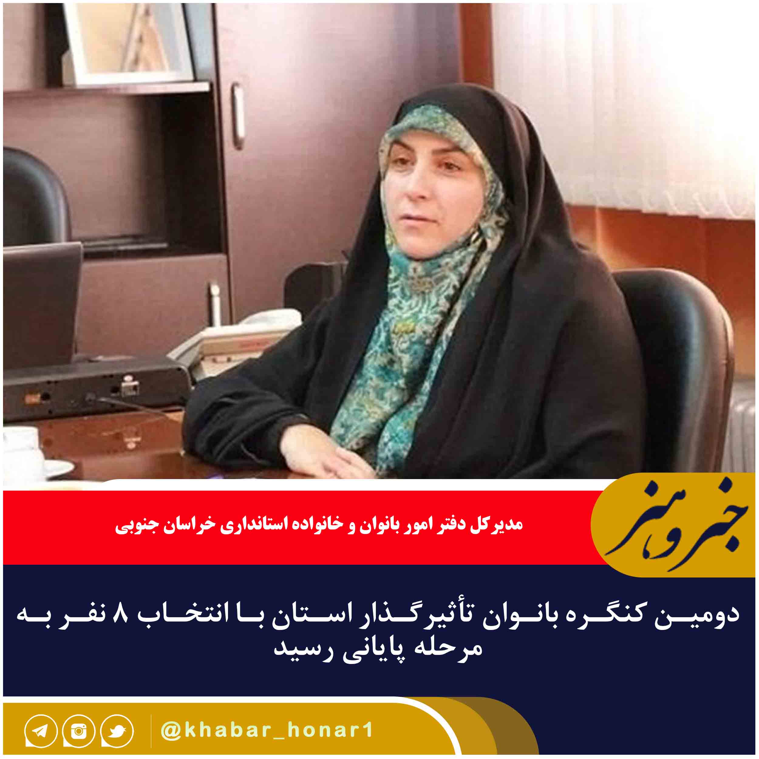 مدیرکل دفتر امور بانوان و خانواده استانداری خراسان جنوبی گفت: دومین کنگره بانوان تأثیرگذار استان با انتخاب ۸ نفر به مرحله پایانی رسید.