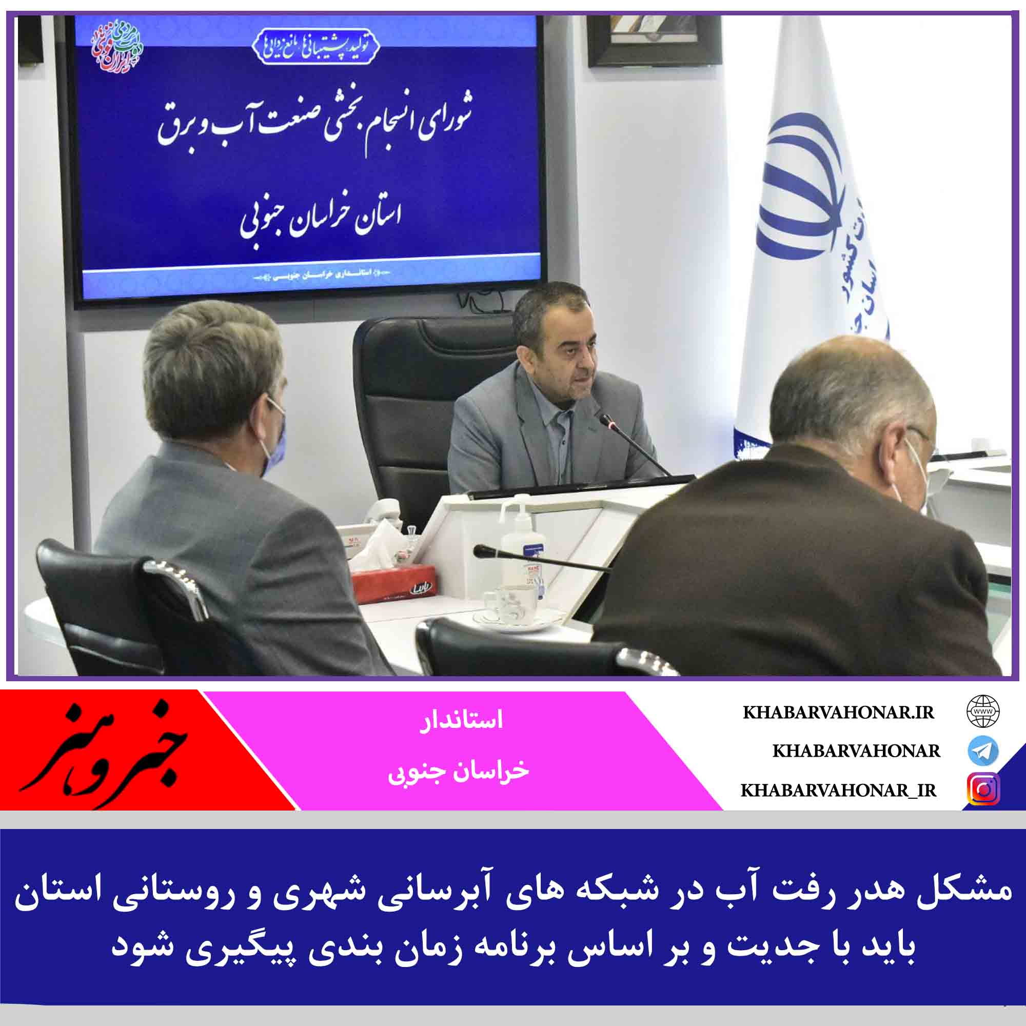?استاندار خراسان جنوبی گفت: مشکل هدر رفت آب در شبکه های آبرسانی شهری و روستانی استان باید با جدیت و بر اساس برنامه زمان بندی پیگیری جواد قناعت با بیان این مطلب در دیدار مدیران عامل شرکت های آب و فاضلاب و آب منطقه ای از اعضای شورای انسجام بخشی صنعت آب و برق استان خاطرنشان کرد: آب از موضوعات کلیدی جامعه جهانی، کشور و استان ماست زیرا علاوه بر حیات انسان، به پیشرفت و تعالی هر کشور و منطقه نیز مرتبط می باشد و امروز بسیاری از کشمکش های منطقه ای و جهانی بر سر آب به وقوع می پیوندد.