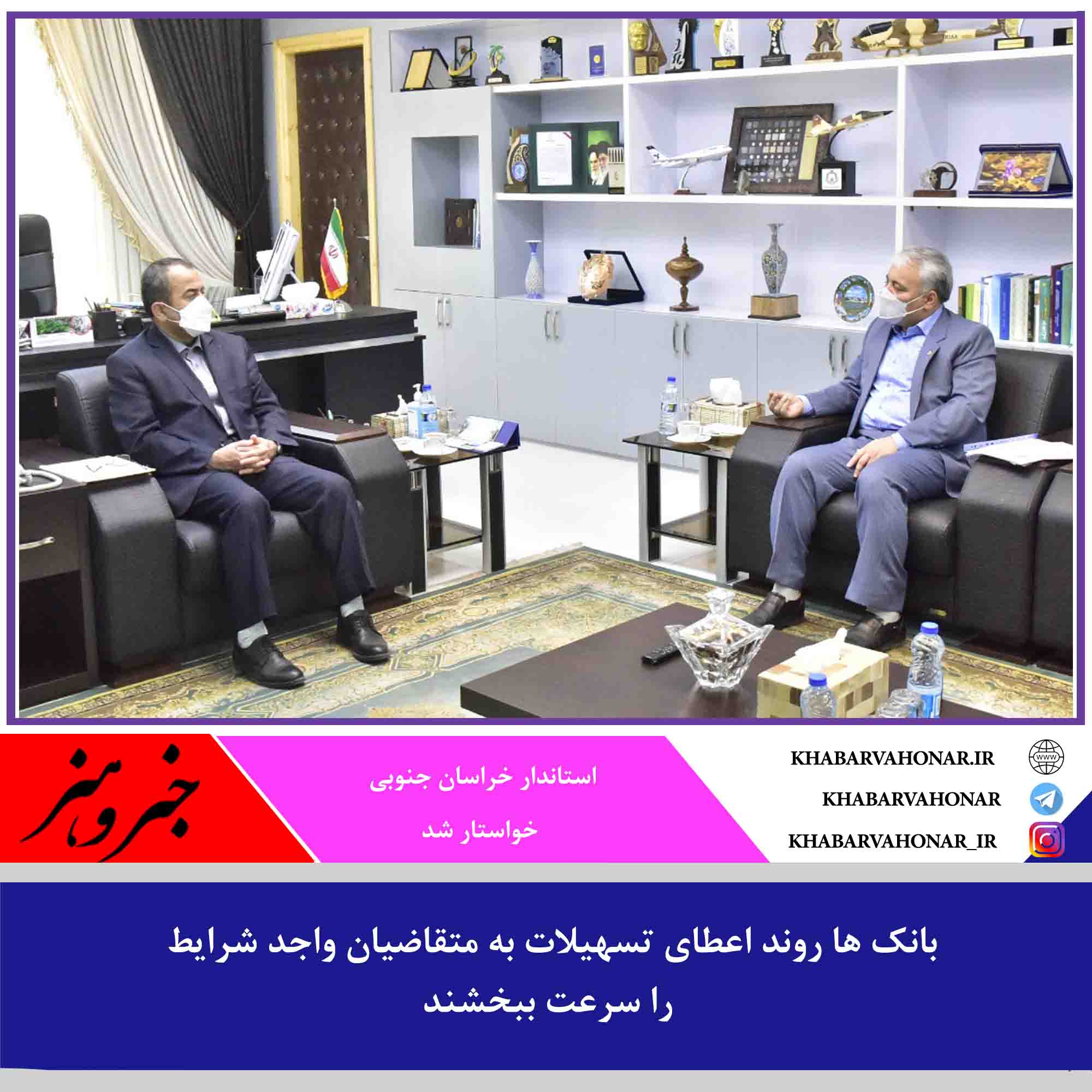 ?استاندار خراسان جنوبی گفت: بانک ها روند اعطای تسهیلات به متقاضیان واجد شرایط را سرعت ببخشند.