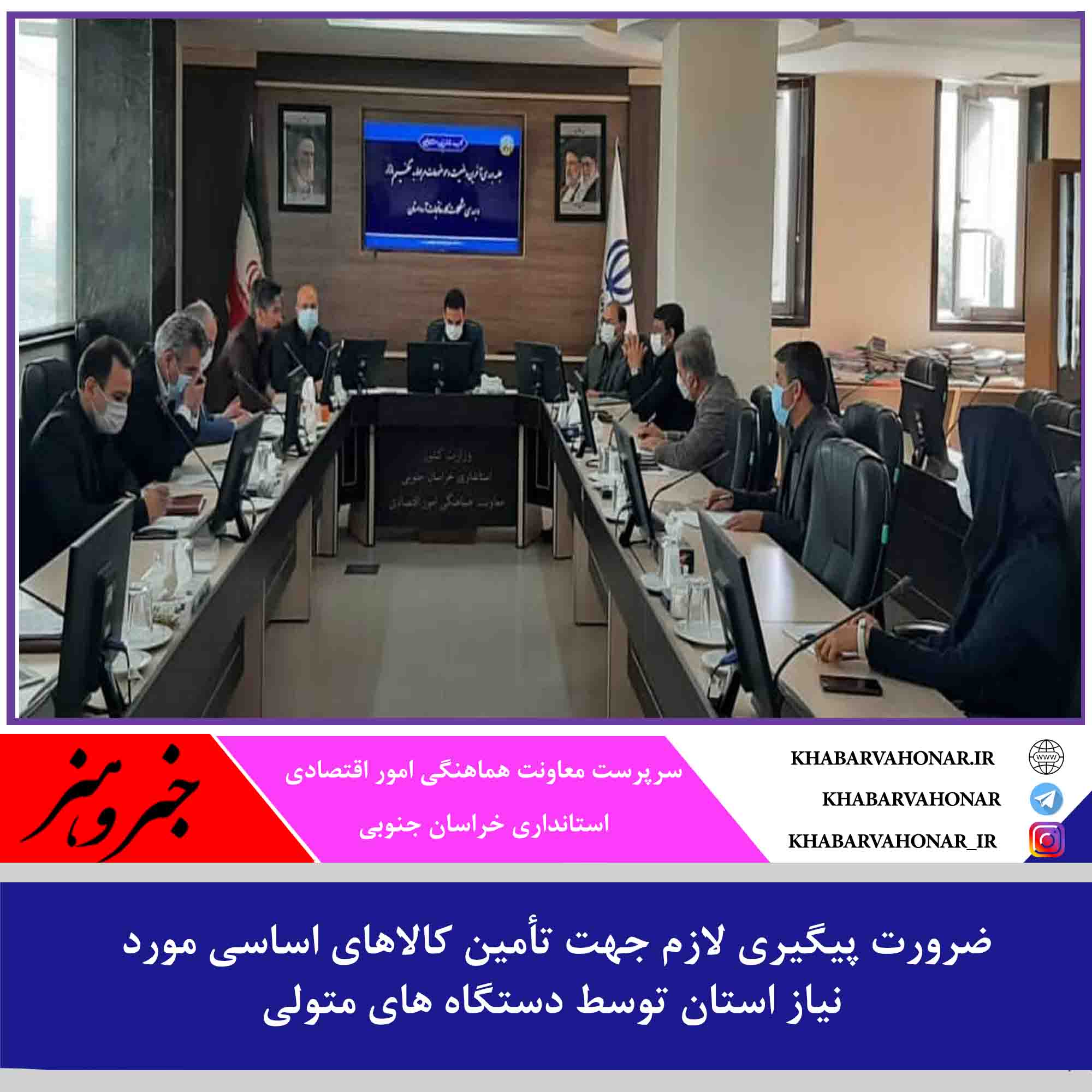سرپرست معاونت هماهنگی امور اقتصادی استانداری خراسان جنوبی بر ضرورت پیگیری لازم جهت تأمین کالاهای اساسی مورد نیاز استان توسط دستگاه های متولی تأکید کرد.
