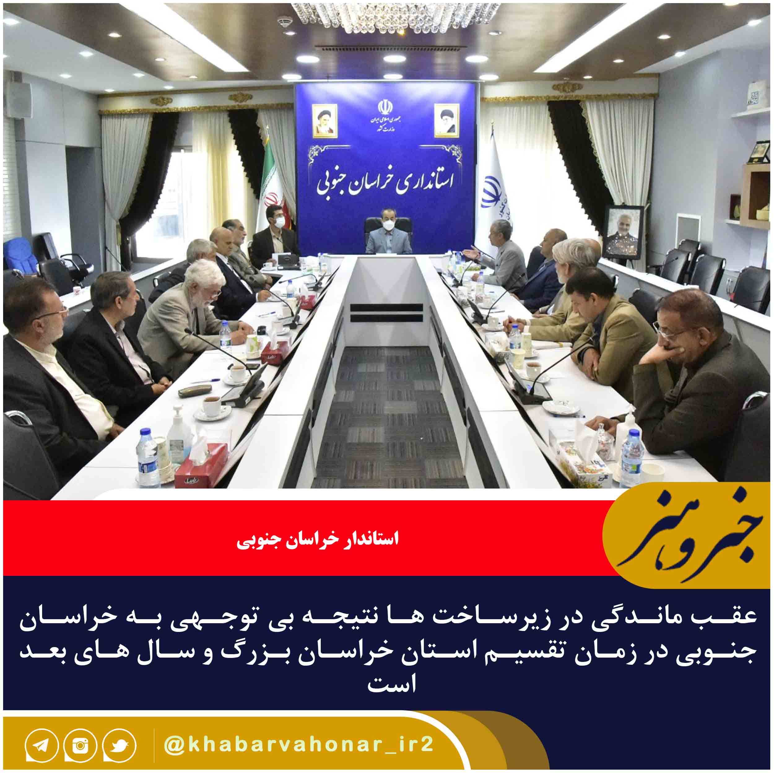 ?استاندار خراسان جنوبی عقب ماندگی در زیرساخت ها را نتیجه بی توجهی به خراسان جنوبی در زمان تقسیم استان خراسان بزرگ و سال های بعد از آن عنوان کرد.