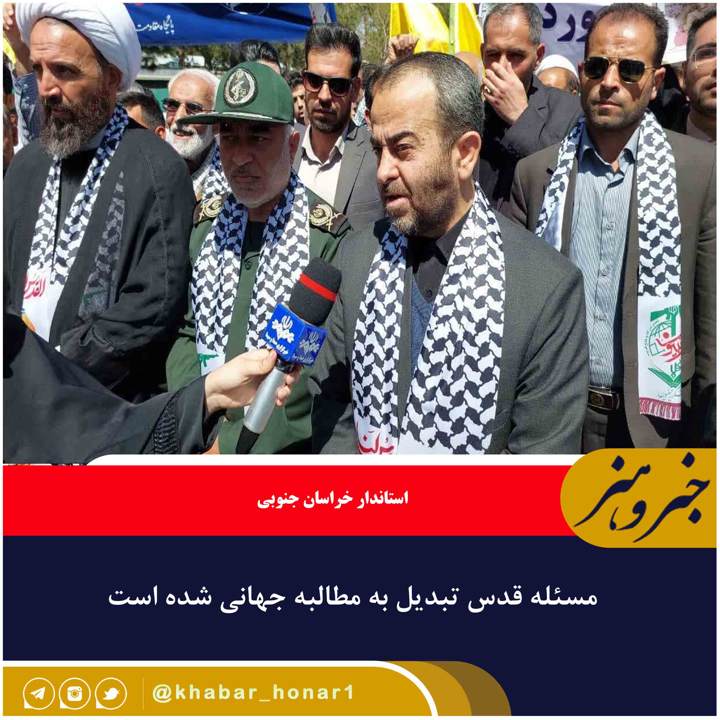 ?استاندار خراسان جنوبی گفت: مسئله قدس تبدیل به مطالبه جهانی شده است.