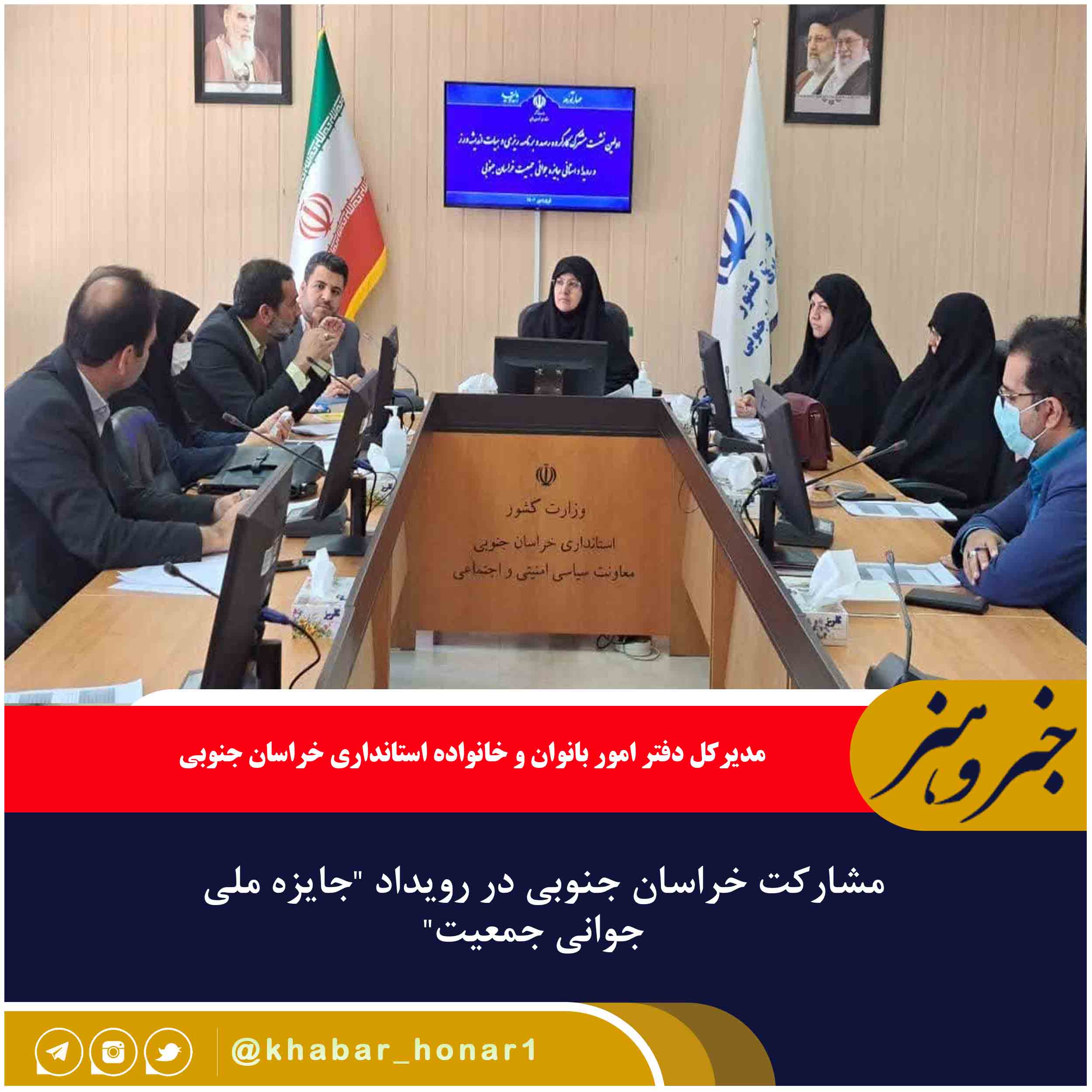 ?مدیرکل دفتر امور بانوان و خانواده استانداری خراسان جنوبی از مشارکت استان در رویداد” جایزه ملی جوانی جمعیت” خبر داد.