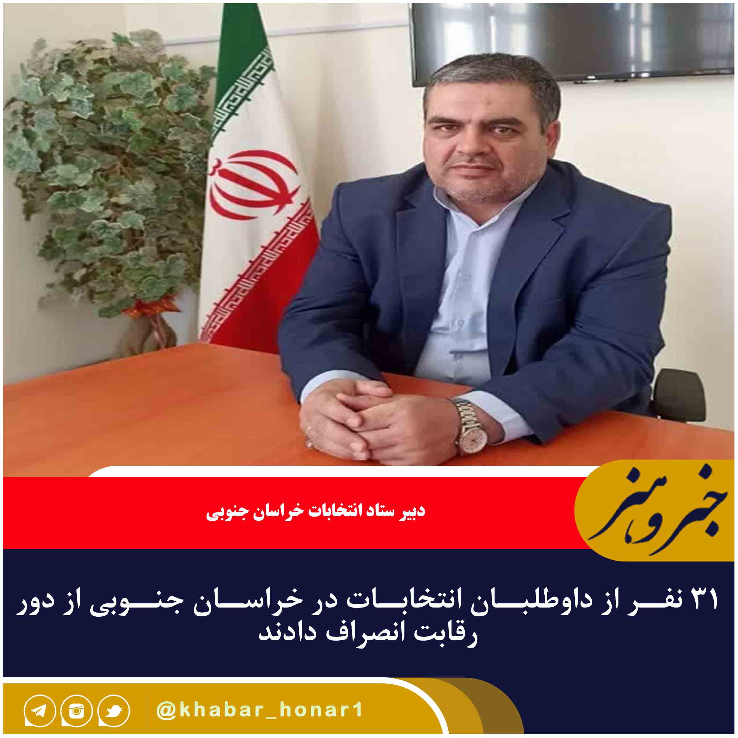 ?دبیر ستاد انتخابات خراسان جنوبی گفت: ۳۱ نفر از داوطلبان انتخابات مجلس شورای اسلامی در خراسان جنوبی، از دور رقابت انصراف دادند.