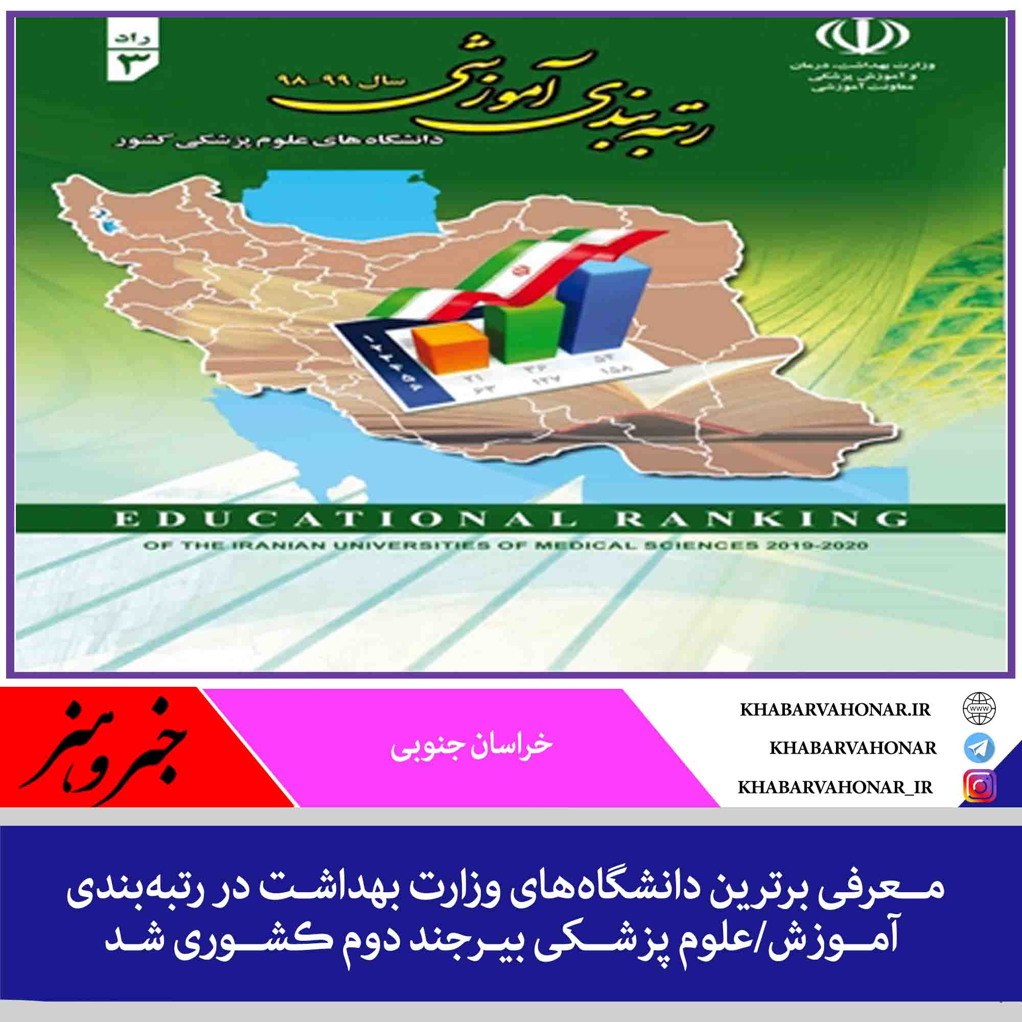 ◽رتبهبندی دانشگاههای علوم پزشکی برای سال تحصیلی ۹۹-۹۸ منتشر شد و دانشگاه علوم پزشکی بیرجند در این رتبه بندی آموزشی موفق به کسب رتبه دوم کشوری در بین دانشگاههای علوم پزشکی هم تراز شد
