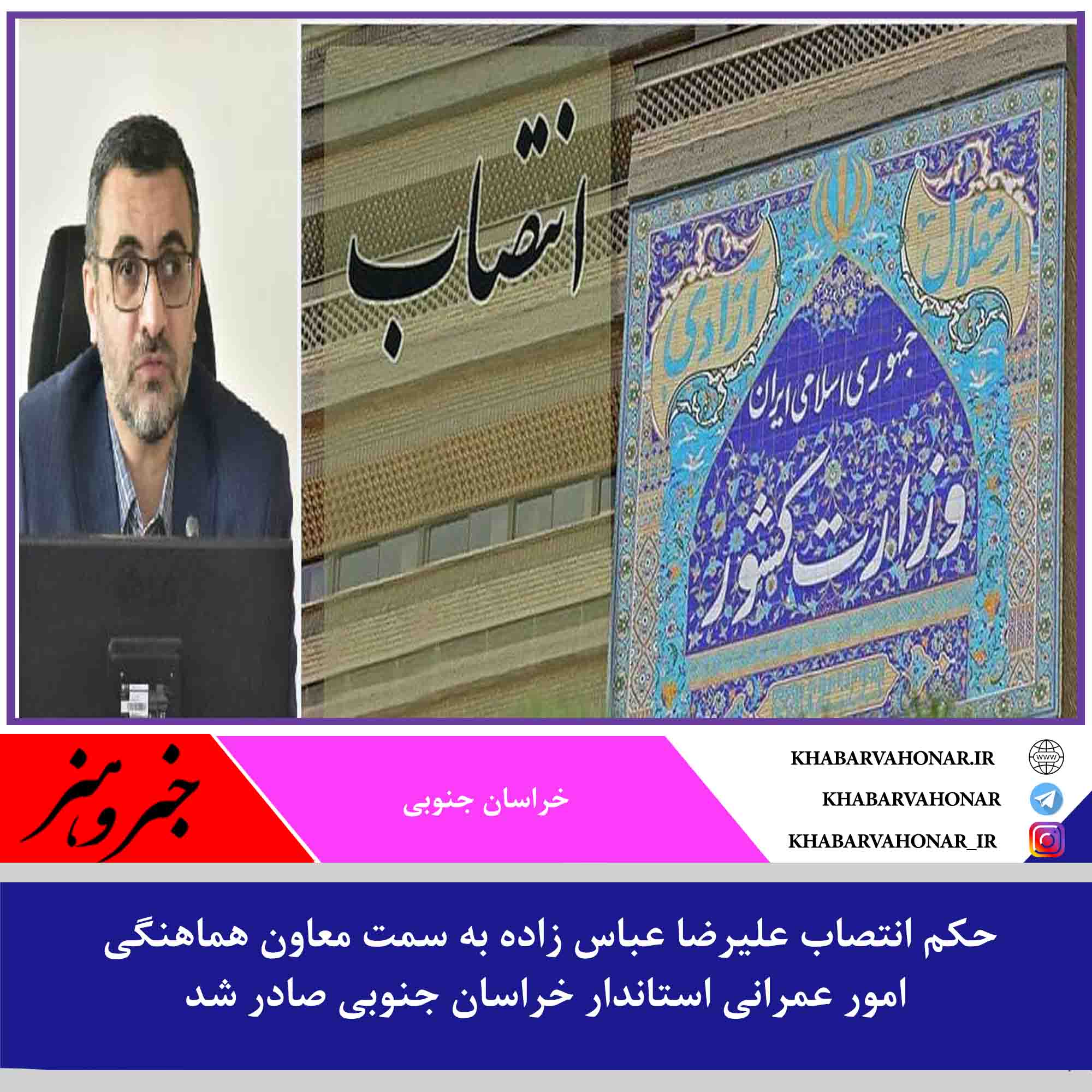 به پیشنهاد استاندار و با تأیید وزیر کشور، حکم انتصاب علیرضا عباس زاده به سمت معاون هماهنگی امور عمرانی استاندار صادر شد.