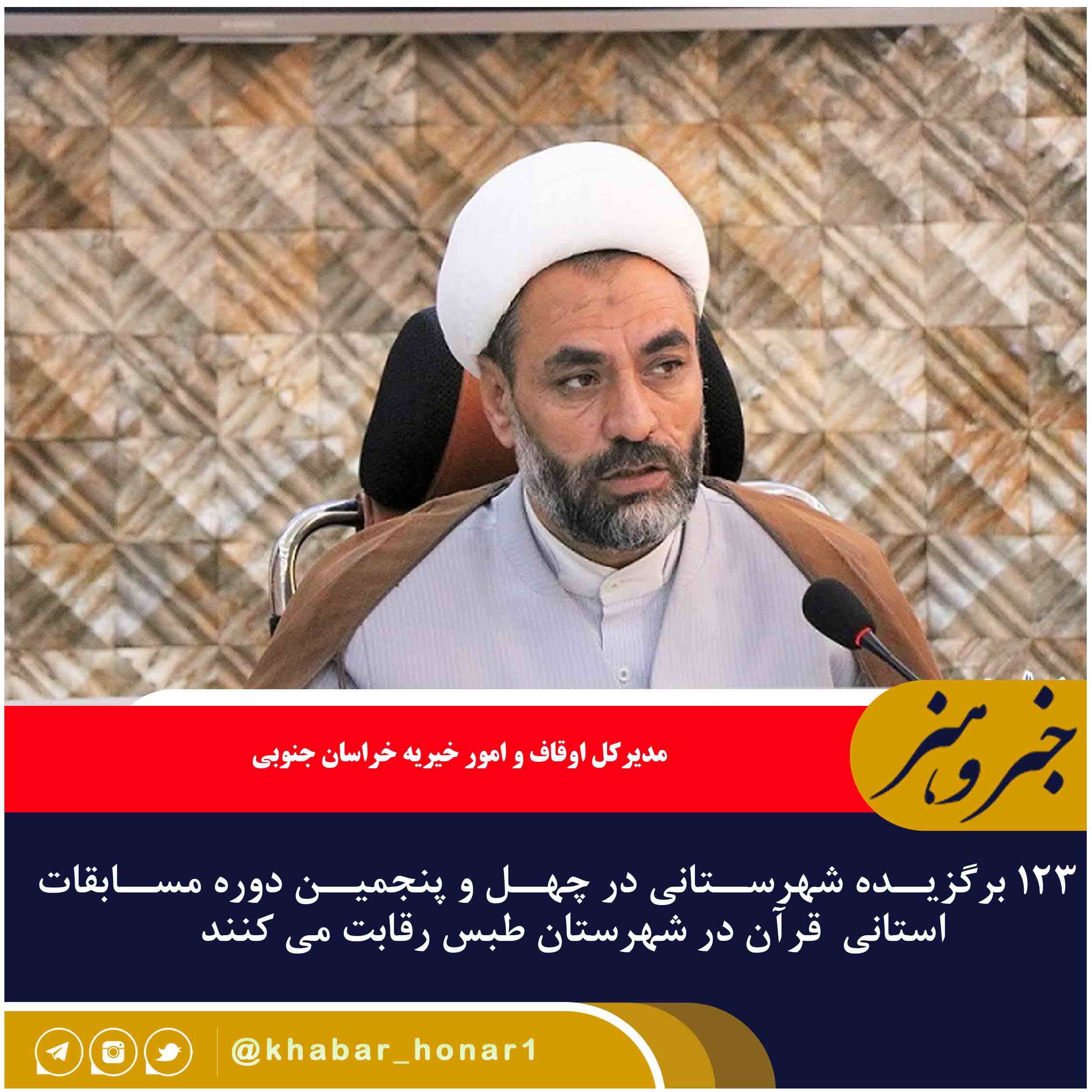 مدیرکل اوقاف و امور خیریه خراسان جنوبی گفت :امسال همزمان با برگزاری چهل و پنجمین دوره مسابقات قرآن در طبس ۱۲۳ برگزیده مرحله شهرستانی با هم رقابت می کنند.