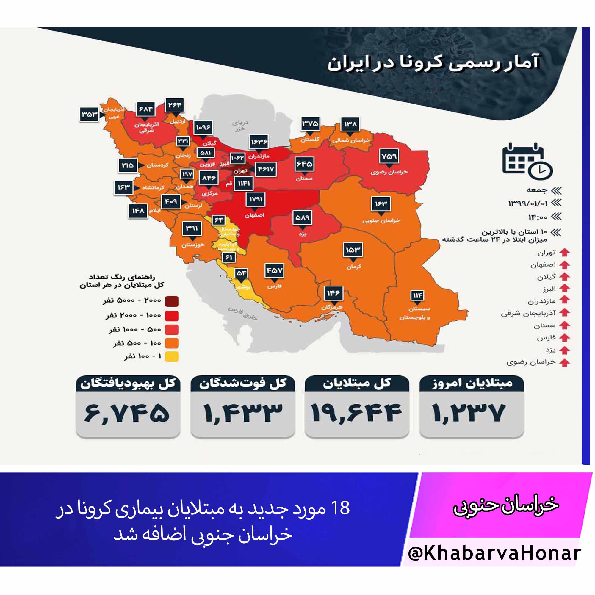 ۱۸ مورد جدید به مبتلایان بیماری کرونا در خراسان جنوبی اضافه شد