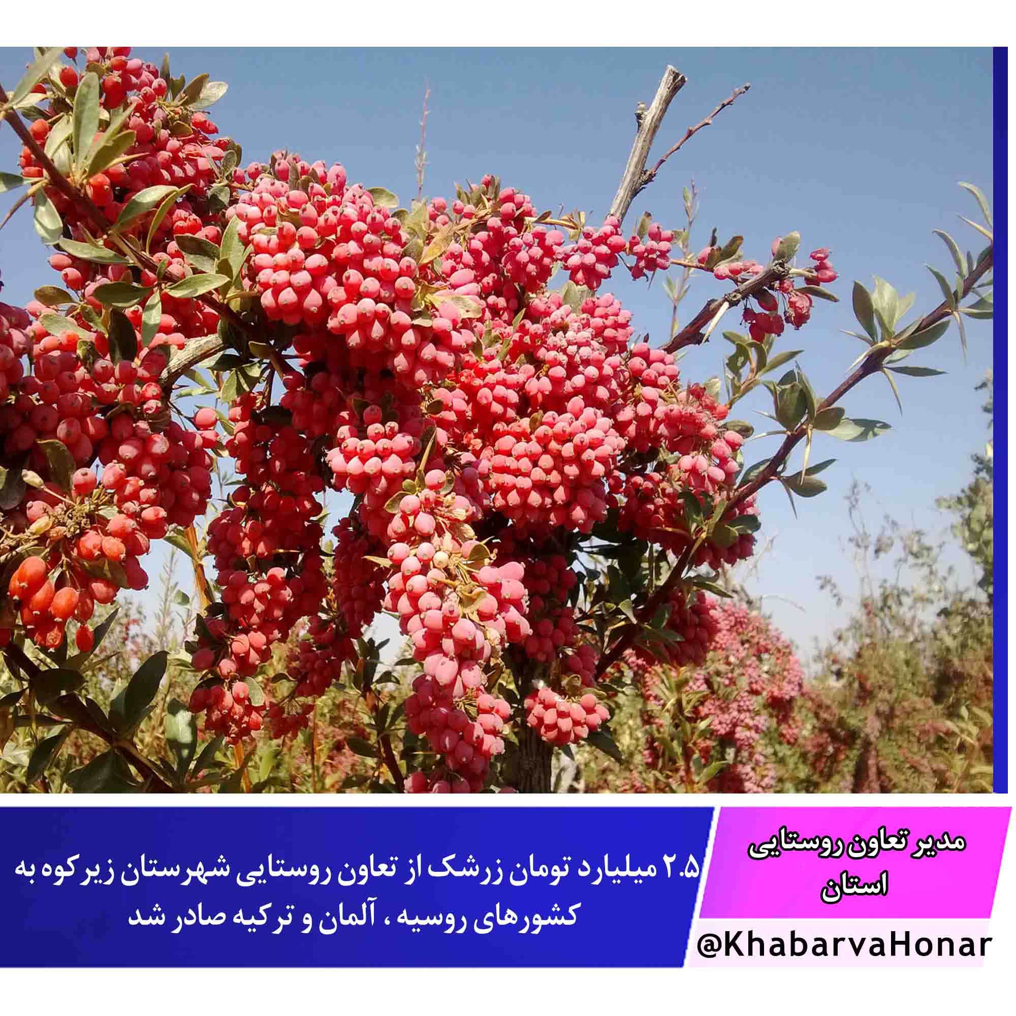 پایان دی امسال ، ۵۰ تن زرشک خشک و ۱۲۴ تن زرشک تازه از کشاورزان خریداری که از این مقدار ۳۸ تن را به کشورهای اروپایی و همسایه صادر کرد.
