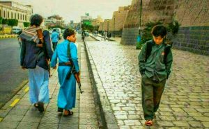 ?عمادالدین مزاری ♦️ تفنگت را زمین بگذار/ که من بیزارم از دیدار این خونبارِ ناهنجار… چقدر این تصویر تلخ است؛ کودکی در یمن، کوله بر