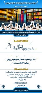 معاون امور هنری و سینمایی اداره کل فرهنگ و ارشاد اسلامی خراسان جنوبی خبر داد: مسابقه عکاسی ” همراه با یار مهربان” ، همزمان با