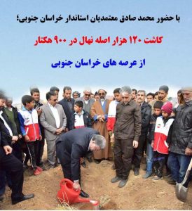 با حضور معتمدیان استاندار کاشت ۱۲۰ هزار اصله نهال در ۹۰۰ هکتار از عرصه های استان خراسان جنوبی شروع شد