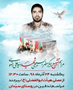اطلاعیه روابط عمومی سپاه انصارالرضا در خصوص شهید بسیجی سید علی رضوی