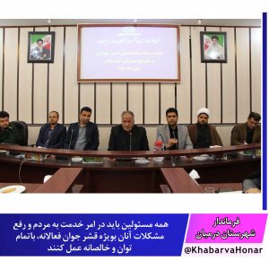 برگزاری جلسه ساماندهی امور جوانان و شورای ورزش شهرستان درمیان فرماندار شهرستان درمیان در این اظهار داشت: همه مسئولین باید در امر خدمت به مردم
