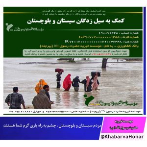 خیرین گرامی ? لطفا وجوه نقدی خود را برای کمک به سیل زدگان سیستان و بلوچستان به حساب «موسسه خیریه حضرت رسول الله –