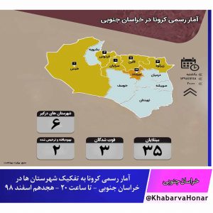 آمار رسمی کرونا به تفکیک شهرستان ها در خراسان جنوبی – تا ساعت ۲۰ – هجدهم اسفند ۹۸