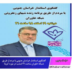 گفتگوی استاندار خراسان جنوبی با مردم از طریق شبکه خاوران ساعت ۲۱ امشب در مورد کرونا