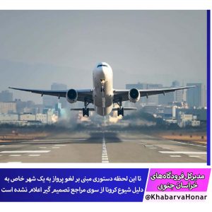 #در_خانه_میمانیم #شکست_کرونا_مردم_همدلی #کرونا_را_شکست_میدهیم #رعایت_بهداشت_فردی مدیرکل فرودگاههای خراسان جنوبی گفت: تا این لحظه دستوری مبنی بر لغو پرواز به یک شهر خاص به دلیل شیوع