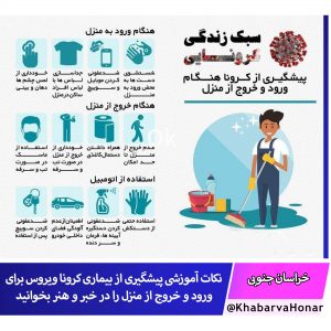 نکات آموزشی پیشگیری از بیماری کرونا ویروس برای ورود و خروج از منزل