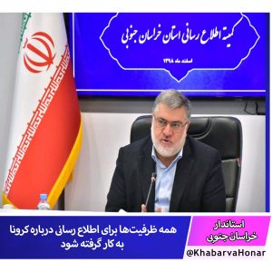 #در_خانه_میمانیم #شکست_کرونا_مردم_همدلی #کرونا_را_شکست_میدهیم #رعایت_بهداشت_فردی استاندار خراسان جنوبی بر استفاده کامل از تمامی ظرفیتها برای اطلاع رسانی درست درخصوص کرونا تاکید کرد و گفت: مهمترین
