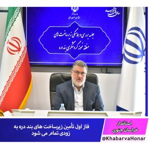 ?استاندار خراسان جنوبی گفت : فاز اول تأمین زیرساخت های بند دره به زودی تمام می شود. معتمدیان با اعلام این خبر در جلسه بررسی