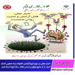 اخبار جعلی در مورد کرونا آرامش خانواده را به خطرمی اندازد اخبار را از منابع موثق بر اساس اعلام ستاد کرونا دنبال کنید
