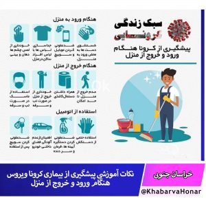 نکات آموزشی پیشگیری از بیماری کرونا ویروس هنگام ورود و خروج از منزل