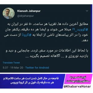 #در_خانه_میمانیم #شکست_کرونا_مردم_همدلی #کرونا_را_شکست_میدهیم #رعایت_بهداشت_فردی جهانپور، سخنگوی وزارت بهداشت: هر ساعت ۵۰ نفر در کشور گرفتار ویروس کرونا میشوند و ایضا هر