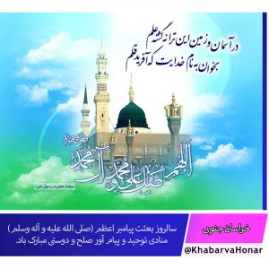 سالروز بعثت پیامبر اعظم (صلی الله علیه و آله وسلم) منادی توحید و پیام آور صلح و دوستی مبارک باد.