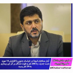 آمار مبتلایان کرونا در خراسان جنوبی با افزایش ۱۵ مورد مثبت جدید، به ۲۶۶ نفر و فوت شدگان بر اثر این بیماری به ۲۴ نفر رسید