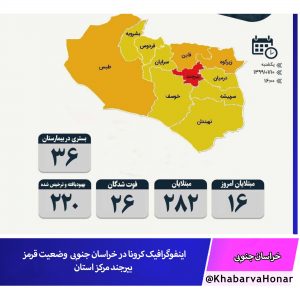 اینفوگرافیک کرونا در خراسان جنوبی وضعیت قرمز بیرجند مرکز استان