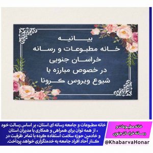 بیانیه خانه مطبوعات و رسانه خراسان جنوبی در خصوص مبارزه با شیــوع ڪــرونا