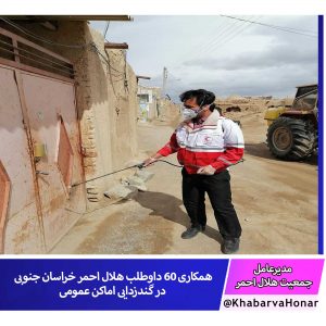 همکاری ۶۰ داوطلب هلال احمر خراسان جنوبی در گندزدایی اماکن عمومی