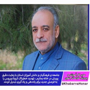 #در_خانه_میمانیم #شکست_کرونا_مردم_همدلی #کرونا_را_شکست_میدهیم #رعایت_بهداشت_فردی “تبدیل تهدید به فرصت توسط دانش آموزان و فرهنگیان استان” مدیر کل آموزش و پرورش خراسان جنوبی
