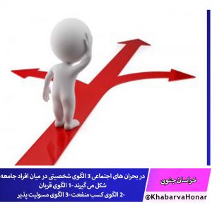 در بحران های اجتماعی ۳ الگوی شخصیتی در میان افراد جامعه شکل می گیرند