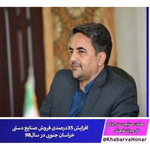 فروش صنایع دستی خراسان جنوبی، پارسال در مقایسه با سال۹۷، ۳۵درصد افزایش داشت. معاون صنایع دستی اداره کل میراث فرهنگی، گردشگری و صنایع دستی استان