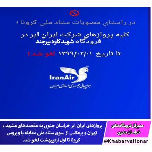 #در_خانه_میمانیم #شکست_کرونا_مردم_همدلی #کرونا_را_شکست_میدهیم #رعایت_بهداشت_فردی پروازهای ایران ایر خراسان جنوبی به مقصدهای مشهد ، تهران و برعکس از سوی ستاد ملی مقابله