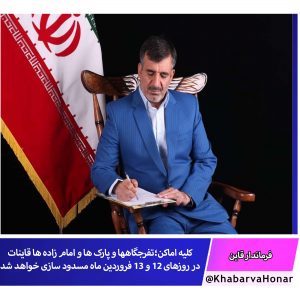 کلیه اماکن؛تفرجگاهها و پارک ها و امام زاده ها قاینات در روزهای ۱۲ و ۱۳ فروردین ماه مسدود سازی خواهد شد