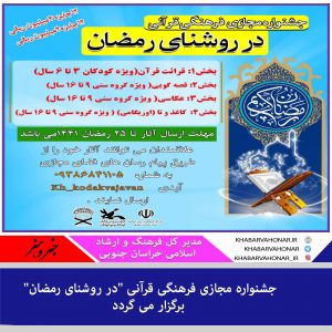 جشنواره مجازی فرهنگی قرآنی “در روشنای رمضان” برگزار می گردد