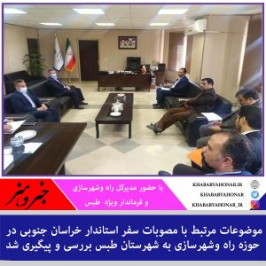 موضوعات مرتبط با مصوبات سفر استاندار خراسان جنوبی در حوزه راه وشهرسازی به شهرستان طبس بررسی و پیگیری شد
