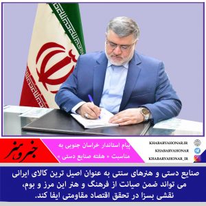 پیام استاندار خراسان جنوبی به مناسبت « هفته صنایع دستی » باسمه تعالی صنایع دستی، روایتگر صنعت و هنر نیاکان و تجلیگاه خلاقیت اقوام این