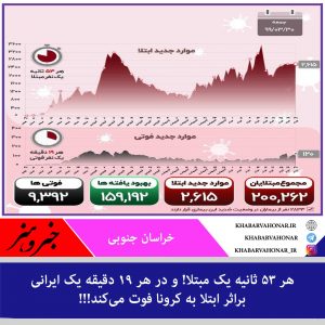 هر ۵۳ ثانیه یک مبتلا! و در هر ۱۹ دقیقه یک ایرانی براثر ابتلا به کرونا فوت میکند!!!