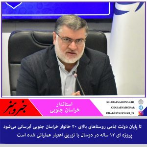 استاندار خراسان جنوبی گفت: تا پایان دولت دوازدهم همه روستاهای بالای ۲۰ خانوار استان خراسان جنوبی از آب پایدار بهرهمند میشوند. محمدصادق معتمدیان روز چهارشنبه از تشکیل
