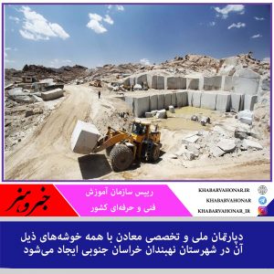 رییس سازمان آموزش فنی و حرفهای گفت: دپارتمان ملی و تخصصی معادن با همه خوشههای ذیل آن در شهرستان نهبندان خراسان جنوبی ایجاد میشود. علی