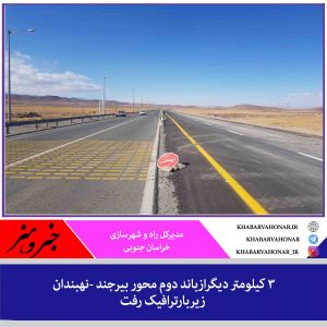 ۳ کیلومتردیگر از باند دوم محور بیرجند- نهبندان حدفاصل روستای پدران باهمکاری پلیس راه و راهداری و حمل ونقل جاده ای زیربارترافیک رفت. ?مدیرکل راه