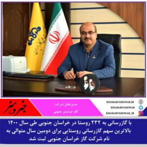 بالاترین سهم گازرسانی روستایی برای دومین سال متوالی به نام شرکت گاز خراسان جنوبی ثبت شد