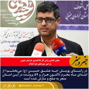معاون قضایی رئیس کل دادگستری خراسان جنوبی در امور شوراهای حل اختلاف گفت: در راستای پویش «به عشق حسین (ع) میبخشم» از ابتدای ماه محرم
