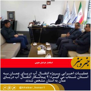 عملیات اجرایی پروژه انتقال آب دریای عمان به استان شتاب می گیرد/۲ پیمانکار انتقال آب دریای عمان به استان مشخص شدند