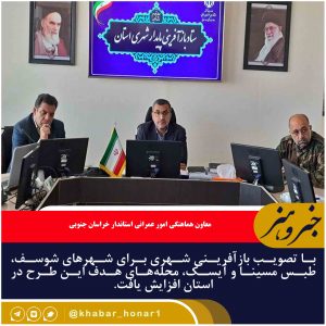 معاون هماهنگی امور عمرانی استاندار خراسان جنوبی اعلام کرد: با تصویب بازآفرینی شهری برای شهرهای شوسف، طبس مسینا و آیسک، محلههای هدف این طرح در